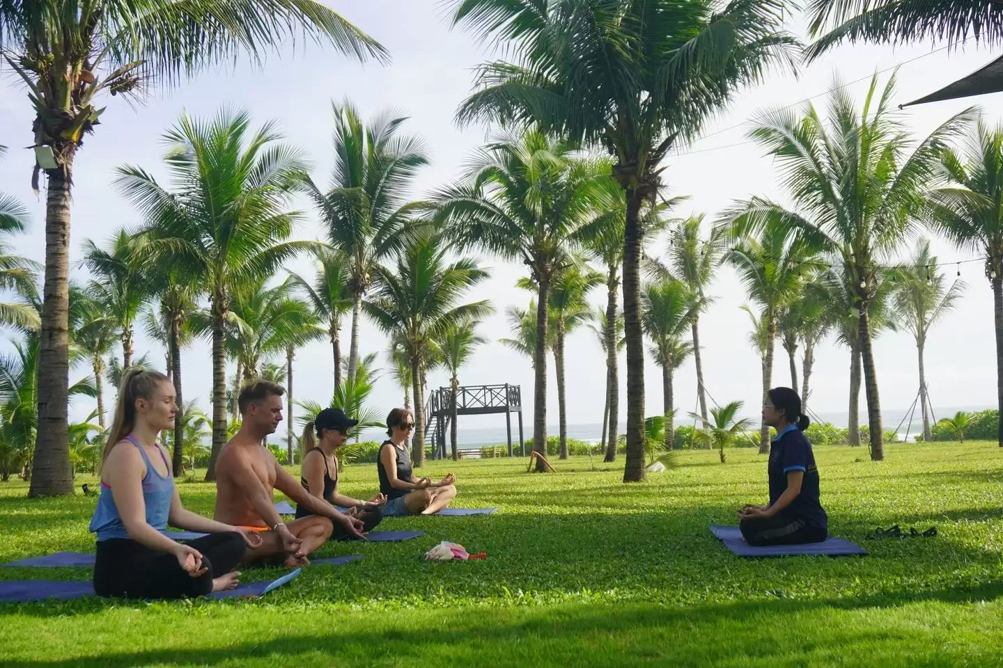 매일 아침, 투숙객은 리조트의 시원한 푸른 정원에서 요가 수업에 참여할 수 있으며, 아침 햇살과 시원한 바닷바람이 편안하고 상쾌한 요가 세션을 위한 이상적인 조건을 만들어냅니다. 나무와 꽃 그늘 아래에서 요가 연습을 위한 평화롭고 고요한 공간을 즐기며, 정신을 상쾌하게 하고 균형을 이룰 수 있습니다.