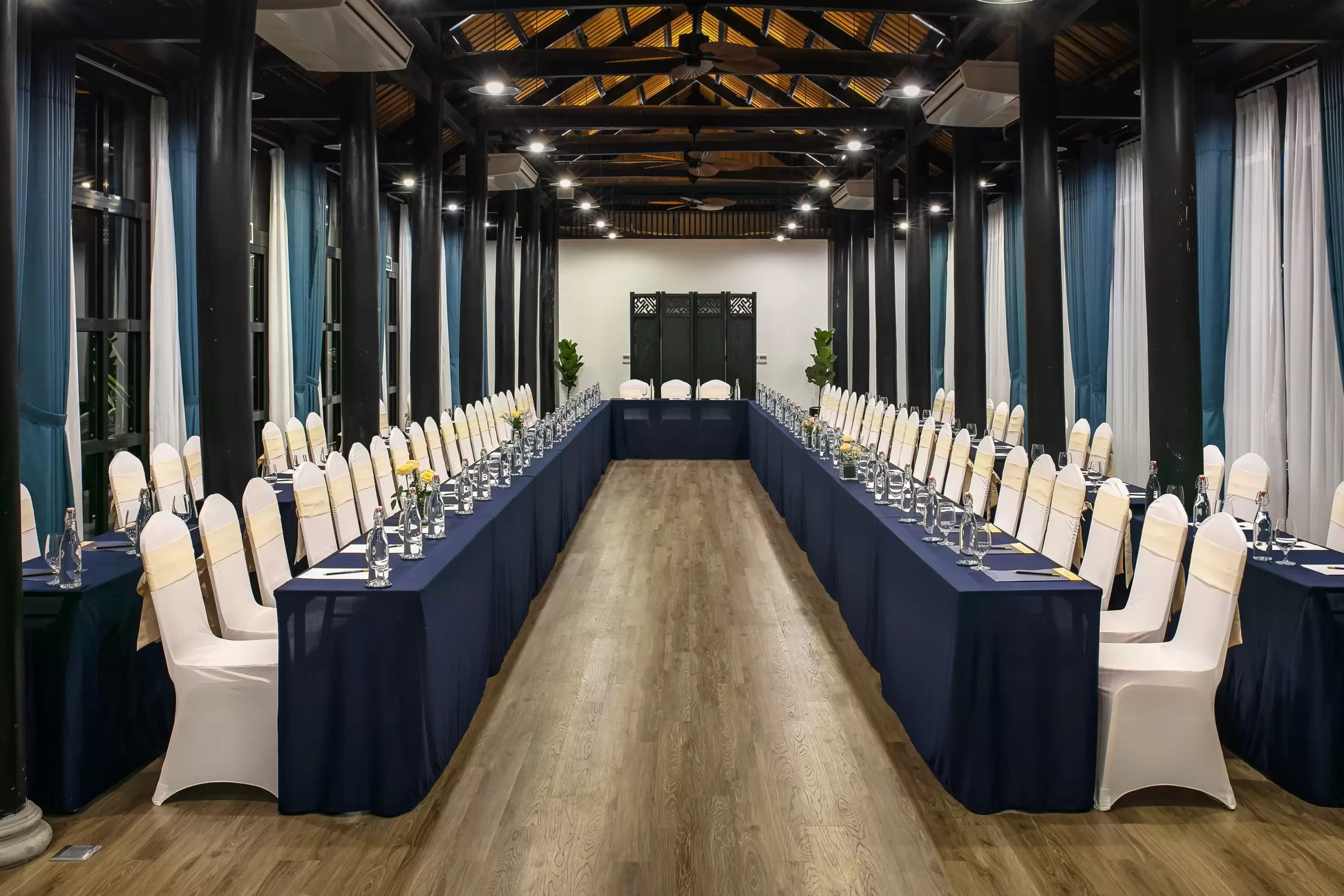 세련되고 웅장한 분위기를 원하신다면 Bliss Hoi An의 실내 장소는 세련된 컨퍼런스, 프레젠테이션, 갈라 디너를 위한 이상적인 배경을 제공합니다. 리조트의 볼룸은 시대를 초월한 우아함을 발산합니다. 자연광과 푸른 정원의 매혹적인 전망으로 장식된 현대적인 디자인은 토론과 네트워킹 기회를 자극하는 영감을 주는 분위기를 조성합니다.